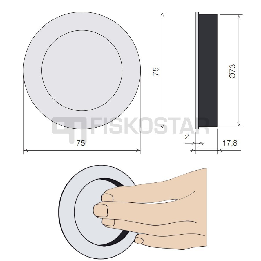 Lükandukse süviskäepide I-4502, ümar D75 mm MRST/AISI-304