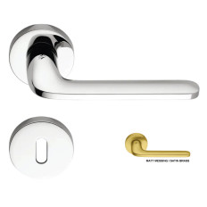 Lever handle with spring! Door handle is suitable only for european standard (E) locks (also for Bonaiti magnetic locks). Due to the raw material, it is not recommended to use it outdoors. Set includes: a pair of handles+keyhole escutcheons |